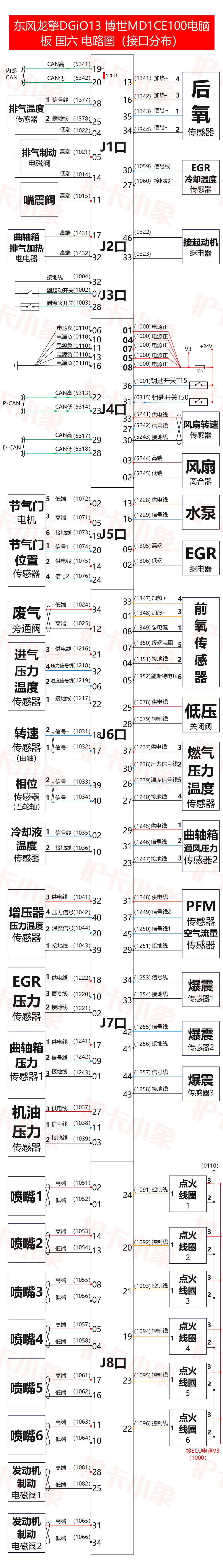 东风龙擎DGiO13 博世MD1CE100电脑 板 国六 电路图(接口分布)