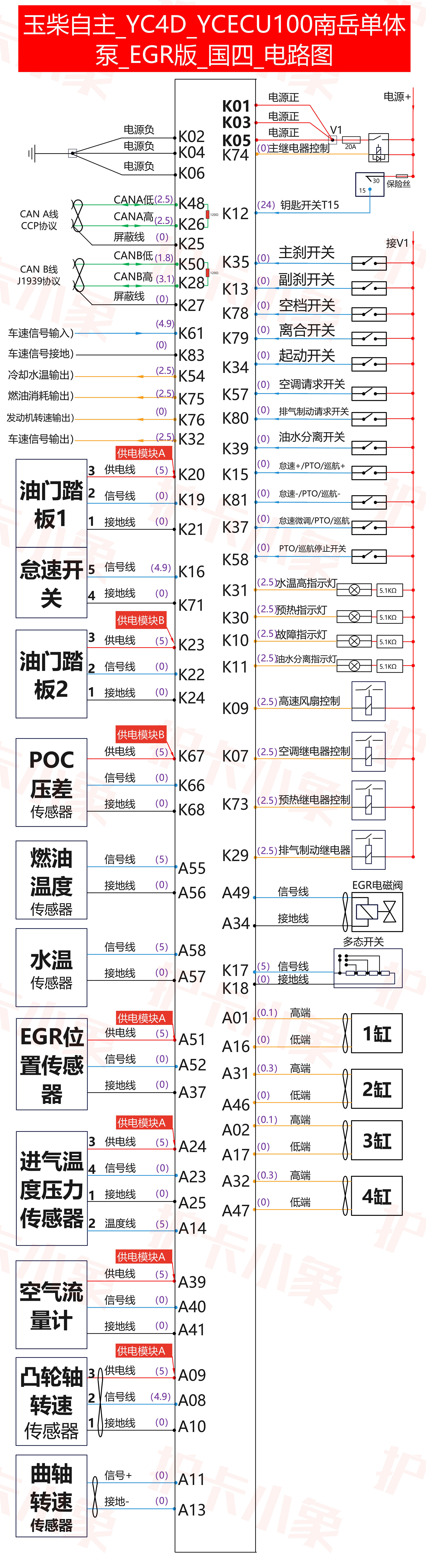 玉柴自主 YC4D YCECU100南岳单体泵 EGR版 国四 电路图