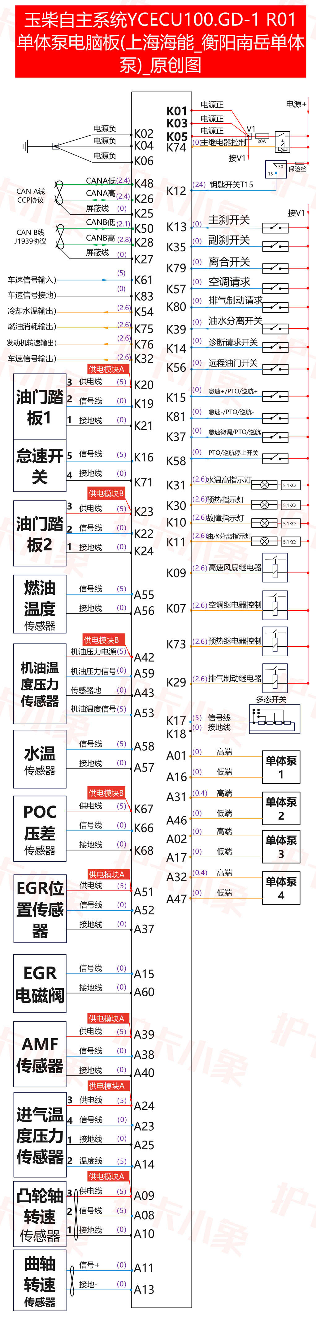 玉柴自主系统YCECU100.GD-1 R01单体泵电脑板(上海海能 衡阳南岳单体泵)原创图