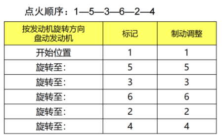 顺时针盘动发动机,直至凸轮轴前端正时孔与凸轮轴轴承盖上孔对齐;或者凸轮轴齿轮上的“T标记与缸盖表面齐平,此时为曲轴转角0“位置。按照右表顺序调整进排气门间隙。,气门间隙要求·进气:0.45 +0.07mm·排气:0.8+0.05mm