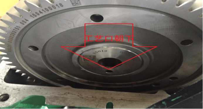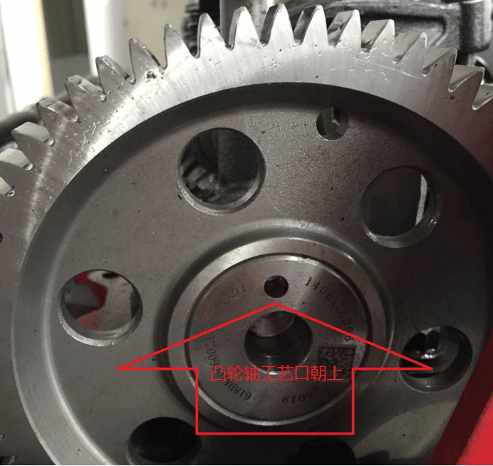 将发动机飞轮盘至一缸压缩上止点时(即看凸轮轴前端工艺口朝下处于6点钟方向)如图1: